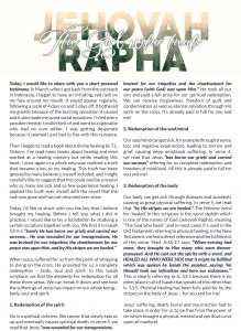 Today, I would like to share with you a short personal testimony. In March, when I got back from the outreach in Indonesia, I began to have an irritating, red rash on my face around my mouth. It would appear regularly, following a cycle of 4 days on and 5 days off. It bothered me greatly because of the burning sensation it caused and it also made me avoid social occasions. I tried every possible remedy I could think of and went to a specialist who had no cure either. I was getting desperate because it seemed I just had to live with this nuisance. Then I began to read a book about divine healing by T.L. Osborn. I’ve read many books about healing and even worked at a healing ministry but while reading this book, I once again in a whole new way realized a truth that became a key to my healing. This truth has been ignored by many believers, also myself, and I might carefully like to suggest that this could well be a reason why so many are sick and so few experience healing. I applied this truth over myself with the result that the rash was gone and has not returned ever since. TO READ THE WHOLE STORY, PLEASE OPEN THE PDF!